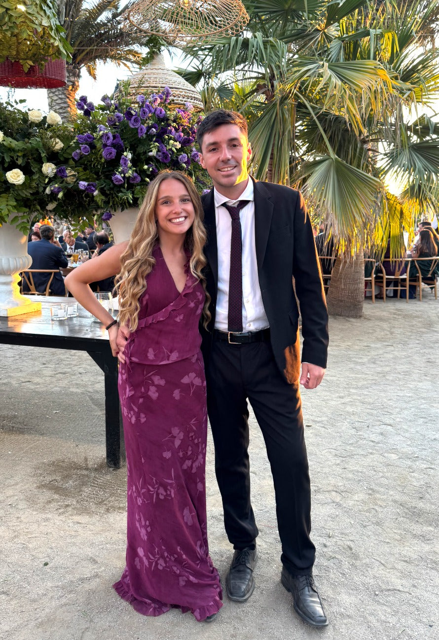 Conjunto Burdeo: Este sofisticado conjunto en tono burdeo está compuesto por un top halter de tela fluida y una falda larga con delicadas transparencias. Su diseño con estampados florales aporta un toque romántico, mientras que el corte permite un movimiento elegante y ligero, ideal para eventos al aire libre o celebraciones especiales. Perfecto para destacar con un look fresco y lleno de estilo.