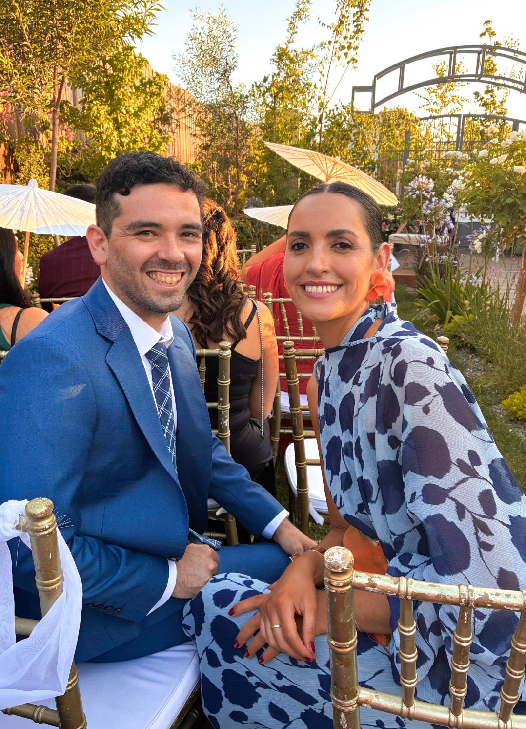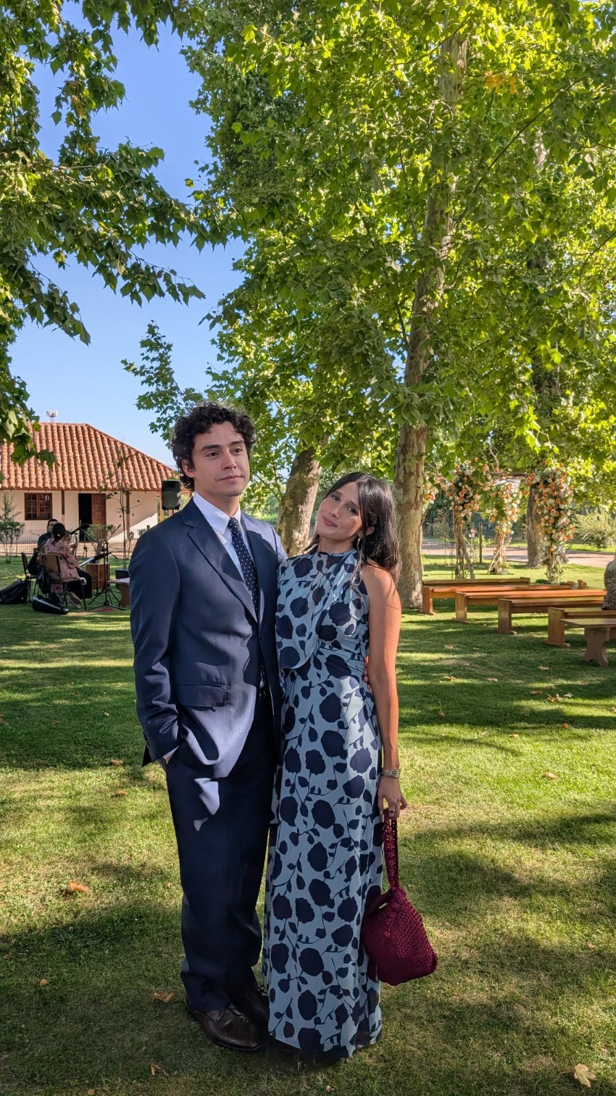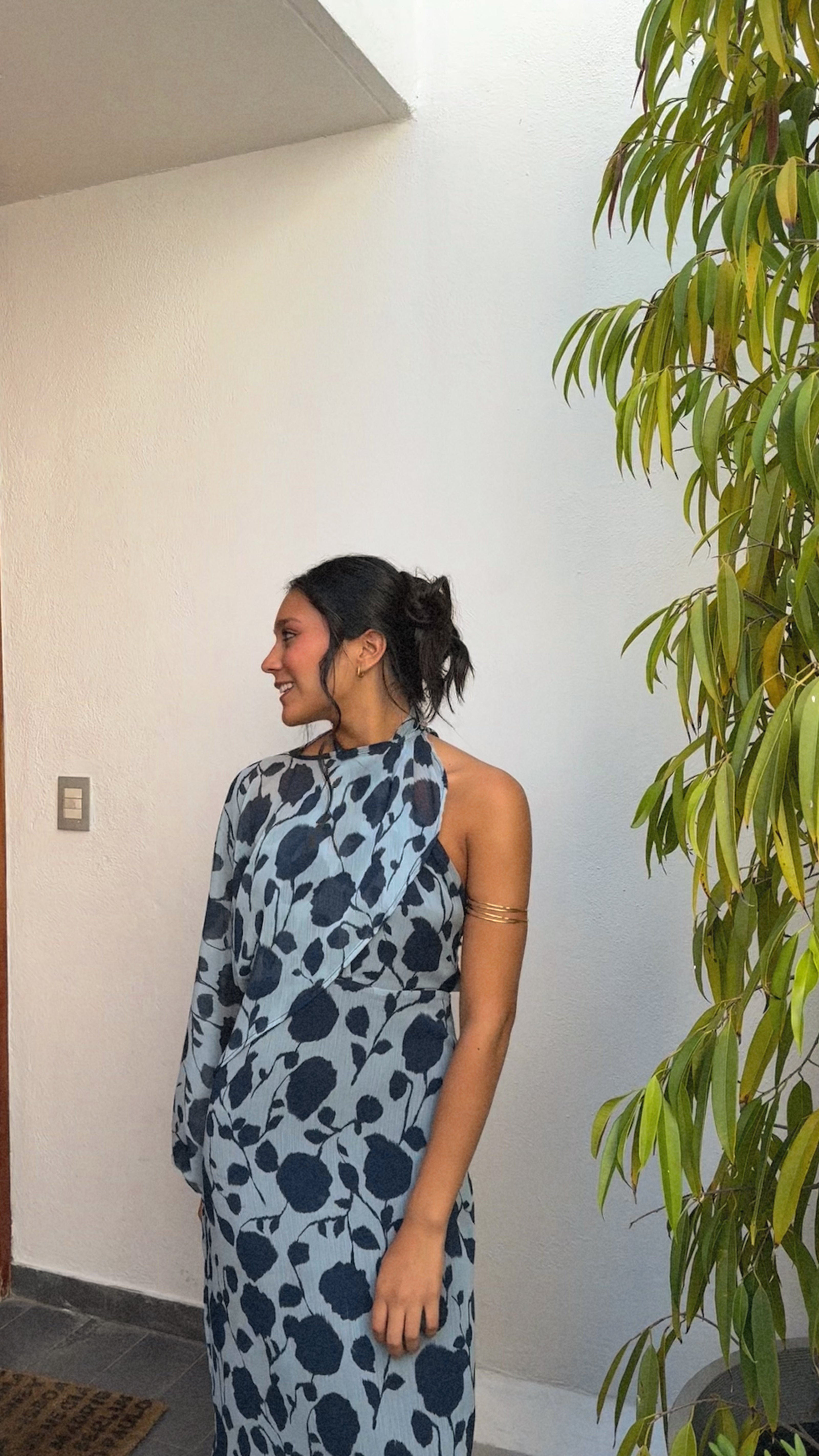 Encantador vestido largo Adele en color azul claro está adornado con flores azul marino, añadiendo un toque de elegancia y sofisticación. Su diseño incluye una manga larga removible, aportando un elemento único y moderno al conjunto. La suavidad de la tela y la fluidez de la falda proporcionan una sensación de movimiento al caminar. Perfecto para ocasiones especiales o eventos formales, este vestido es una maravillosa opción para quienes buscan combinar la frescura del azul claro con la distinción de las flores azul marino. La manga larga asimétrica añade un toque moderno y distintivo, haciéndolo una opción versátil. Combina nuestro modelo Adele con su capa a juego en color azul marino para completar el look con un toque de frescura y romance. Además, este vestido incluye una manga removible a juego.