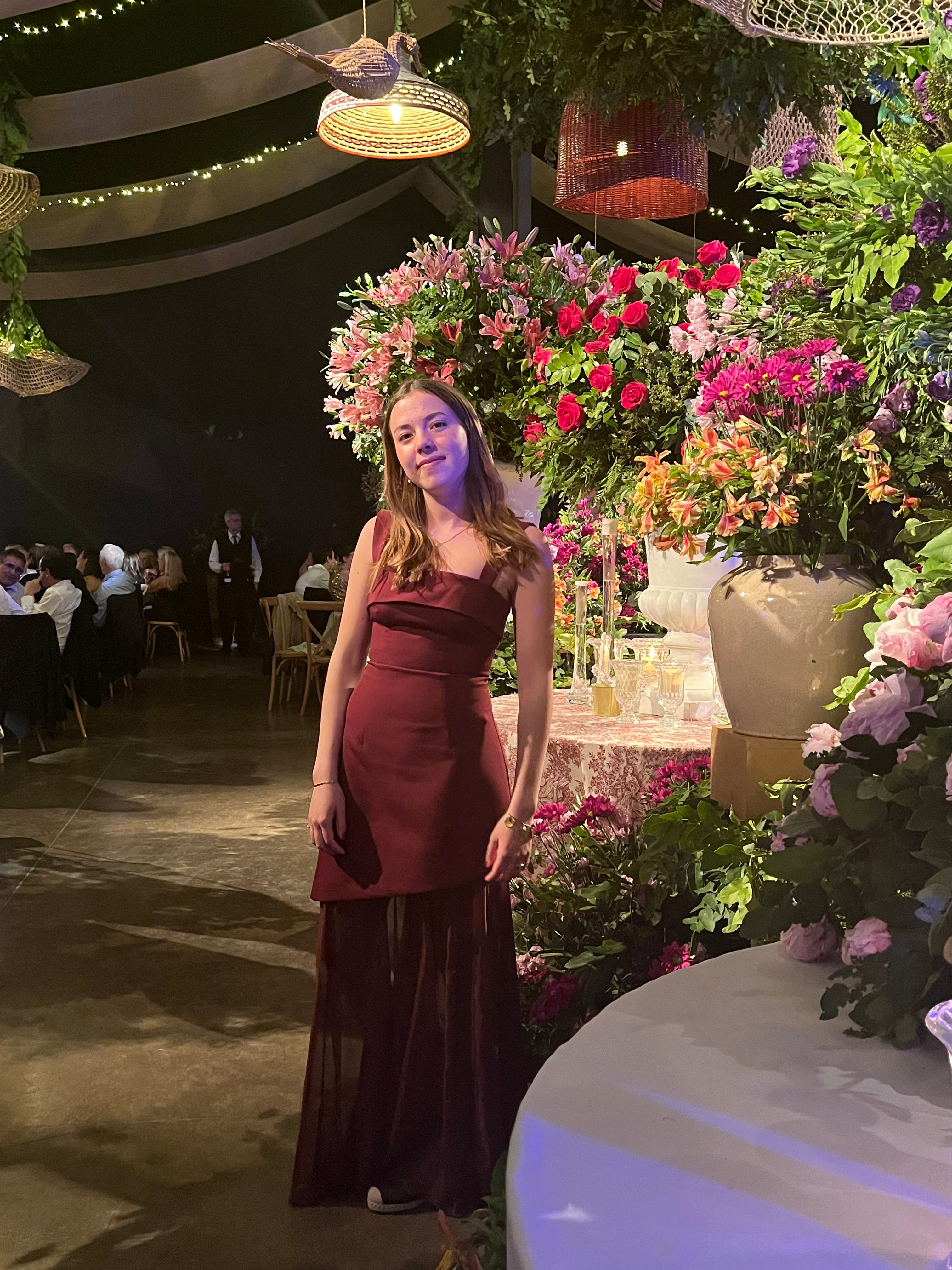 El Vestido Amber Burdeo en crepé es una elección ideal para quienes buscan un look sofisticado y con personalidad.