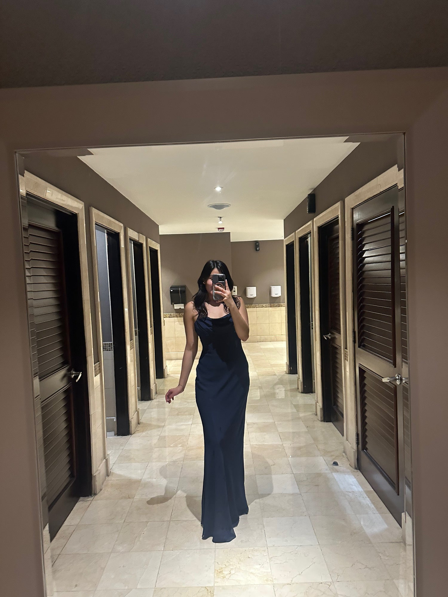 - Silueta fluida: Su silueta fluida y corte bien ajustado aseguran que te sientas cómoda durante todo el evento, permitiéndote disfrutar al máximo cada momento.