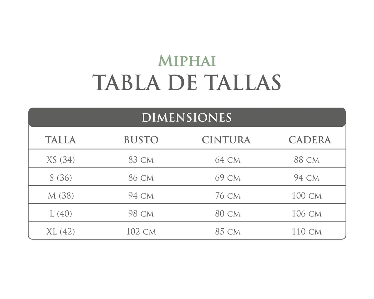 Diseñado y confeccionado artesanalmente en España por expertas costureras, este vestido lleva toda la esencia y la calidad distintiva de la marca MIPHAI.