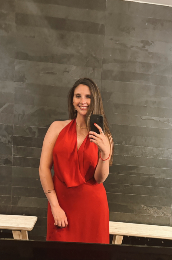 - Cierre: Cremallera invisible en la espalda y botón en el cuello