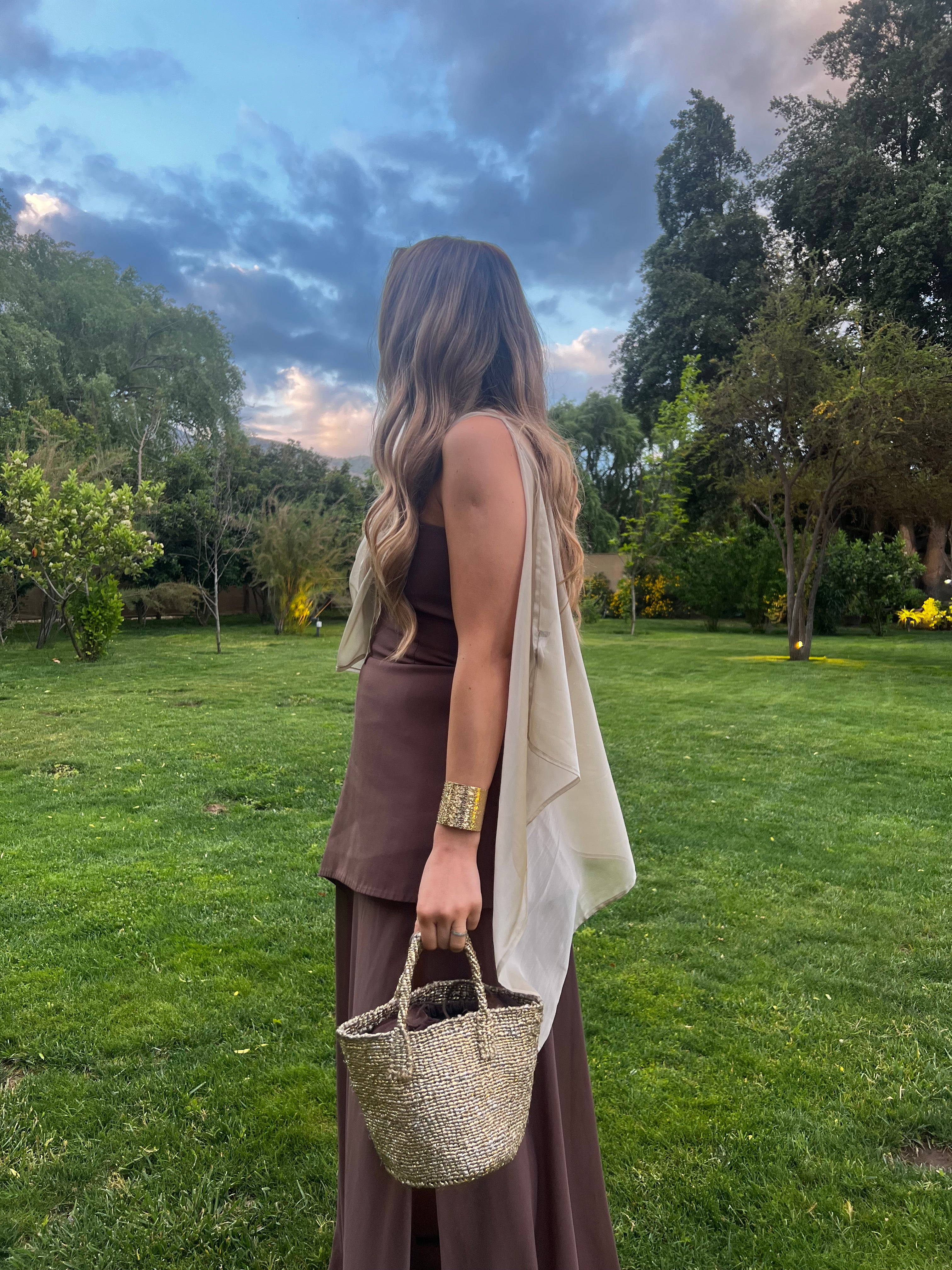 - Opta por sandalias nude o doradas y un maquillaje suave en tonos cálidos para resaltar la naturalidad y elegancia del vestido.